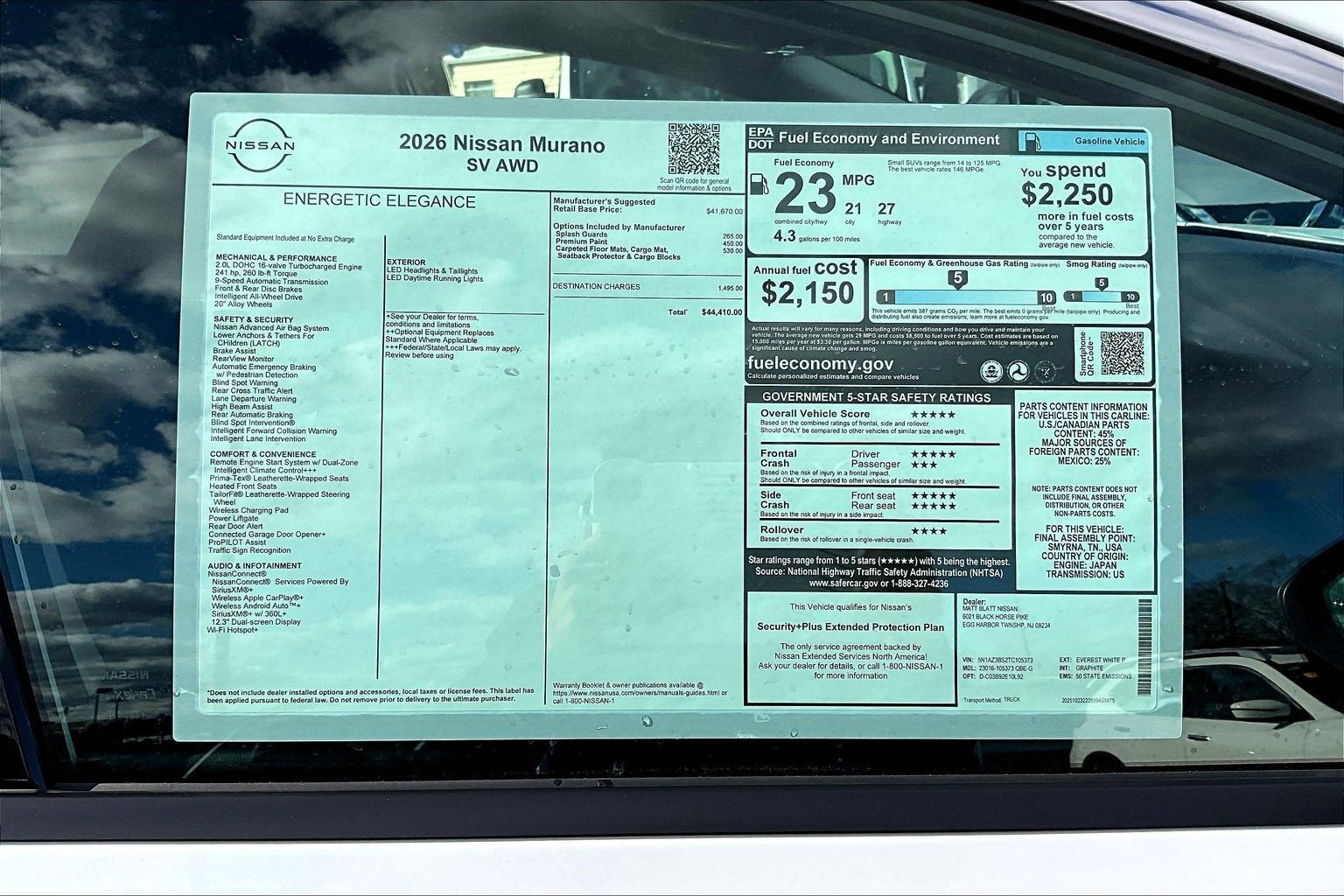 Matt Blatt and Autofi make every effort to ensure the accuracy of information on this site. However, data or typographical errors may occur, and we reserve the right to correct them once identified. Vehicle pricing and availability are subject to change without notice, and all vehicles are subject to prior sale. Prices include all costs to be paid by a consumer, except licensing, registration, and taxes. IN ORDER TO QUALIFY FOR THE “MATT BLATT PRICE” INTERNET PRICING FOR NEW VEHICLES YOU MUST HAVE A CONFIRMED APPOINTMENT SCHEDULED AND KEPT WITH OUR INTERNET CENTER AND A PRINTED COPY OF THE PUBLISHED PRICE MUST BE PRESENTED IN PERSON TO A SALES REPRESENTATIVE PRIOR TO PURCHASING. INTERNET PRICING CANNOT BE USED IN CONJUNCTION WITH ANY OTHER PRICING OR ADVERTISEMENT. Optional dealer-installed protection products are available at additional cost and can be removed at the customer’s request. EPA-estimated mileage; actual mileage will vary. Offer expires at midnight tonight.