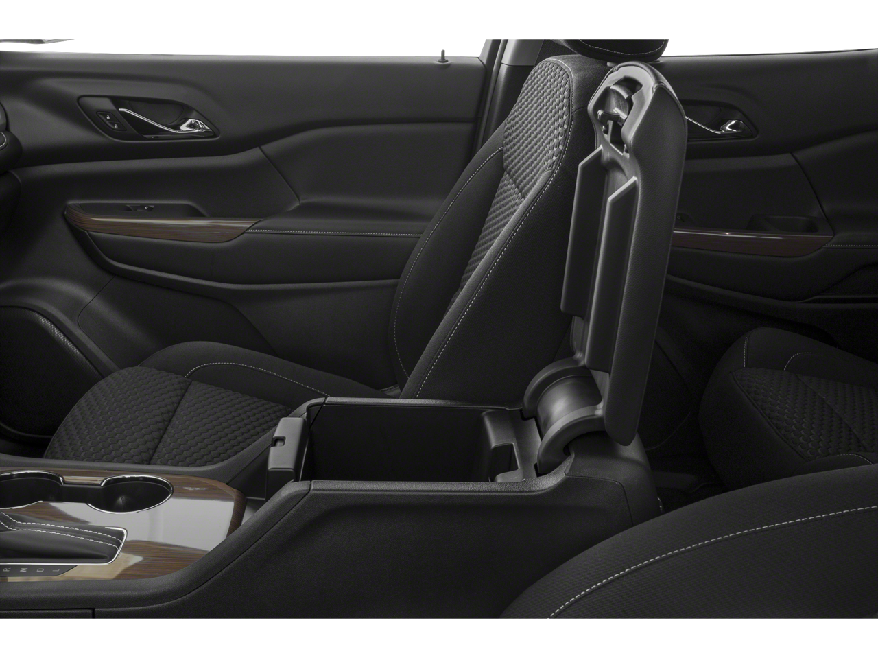 - Console, front center with 2 cup holders and storage, includes rear storage drawer