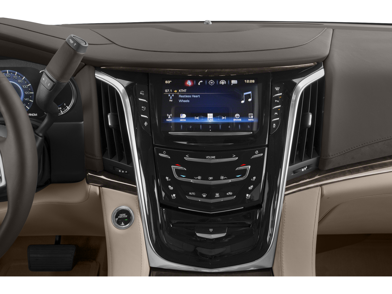• Cadillac user experience with embedded navigation AM/FM stereo with 8" diagonal color information display featuring touch response, haptic feedback, gesture recognition, Natural Voice Recognition, Phone Integration for Apple CarPlay and Android Auto capability for compatible phone, Connected Apps and Teen Driver. Five USB ports, including one in the articulating storage door/bin and auxiliary audio port