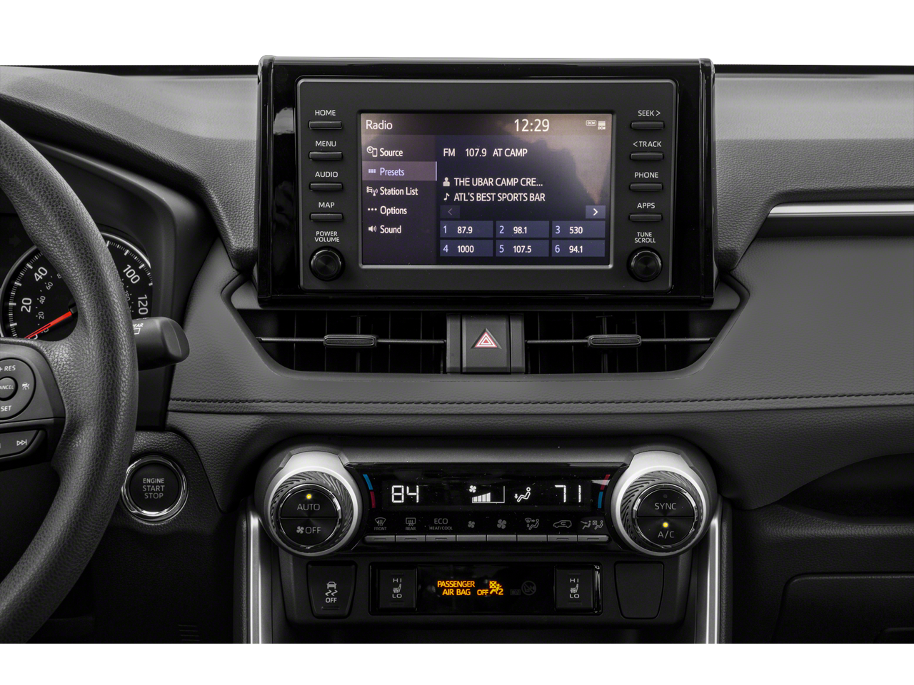 - Radio: AM/FM Stereo -inc: 6 speakers, 7.0" touchscreen, Scout GPS link compatible w/up to 3-year trial, Siri Eyes Free, Apple CarPlay compatible, Amazon Alexa compatible, Android Auto, aux port, USB media port, 4 USB charging ports, hands-free phone capability, advanced voice recognition and music streaming via Bluetooth® wireless technology, Toyota connected services - Safety Connect w/3-year trial, SiriusXM w/3-month all access trial, Wi-Fi Connect powered by Verizon w/up to 2GB within 6-month trial, See toyota.com/entune for details
