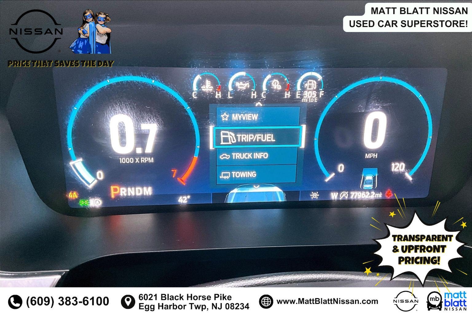 Matt Blatt has been serving New Jersey, Pennsylvania, Delaware, and New York for over 30 Years! Matt Blatt NISSAN is fully committed to maintaining a customer-first approach. Our team of professionals is dedicated to keeping the process quick and easy, putting YOU in control of the whole experience. We look forward to providing you with the finest vehicles and services! Buy with confidence knowing this vehicle has earned its place in our inventory by passing our rigorous multi-point inspection and reconditioning process by our 100% Certified Technicians and it is ready for many miles of reliability and comfort. TRANSPARENT & UPFRONT PRICING WITH NO HIDDEN FEES. We are constantly updating and strategically pricing our inventory to make sure you get a great price without having to be a great negotiator. Carfax is available free of charge on all of our vehicles.