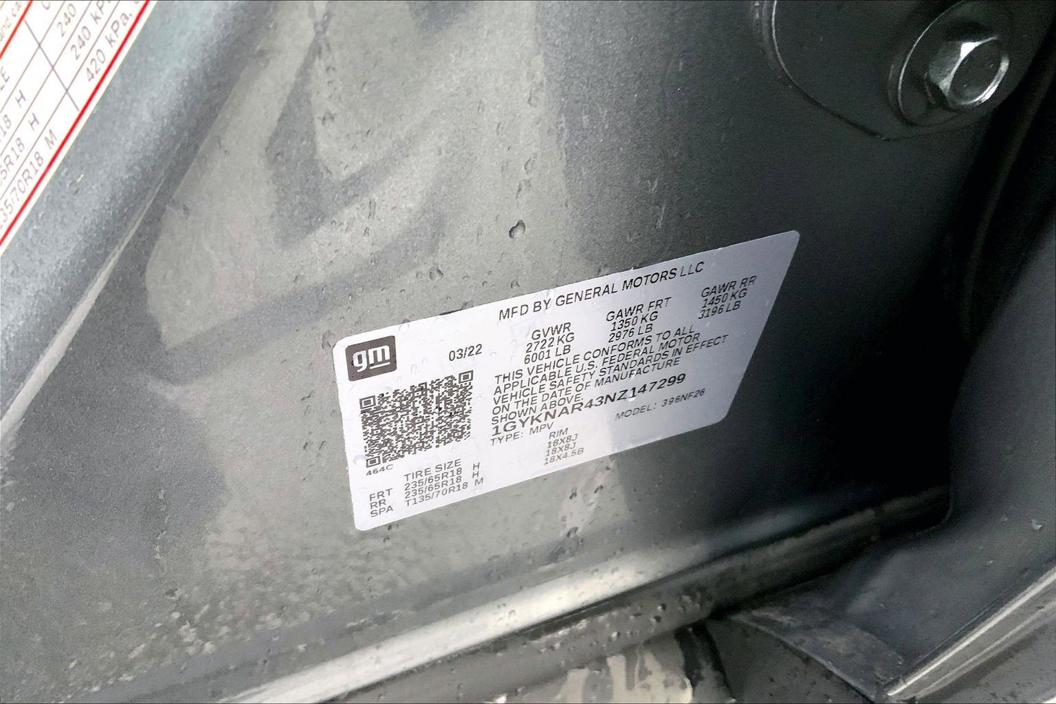 - Tires, P235/65R18 all-season, H-rated, blackwall