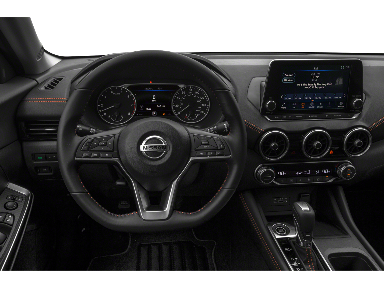 The Sentra SR's sleek, sporty exterior is complemented by 18-inch alloy wheels, a rear spoiler, and body-color mirrors and bumpers. The interior boasts premium cloth seating, a leather-wrapped steering wheel, and an array of thoughtful touches that elevate your driving experience.