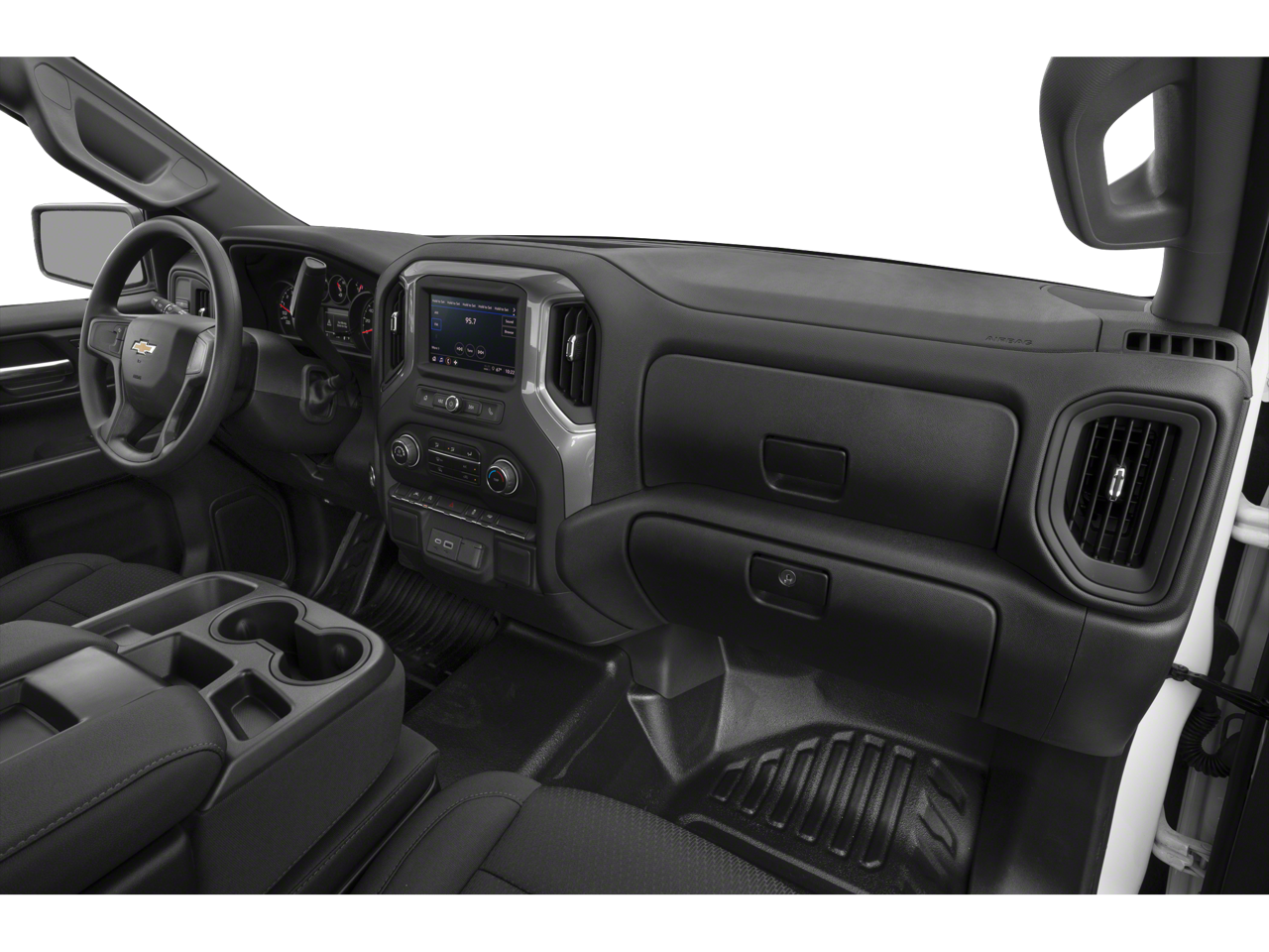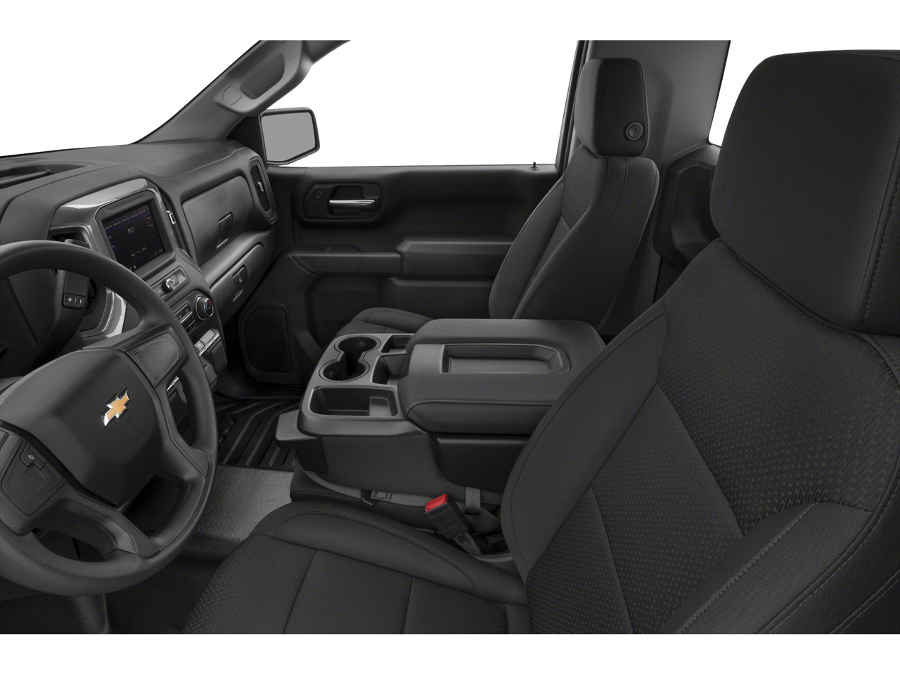 Inside, the Silverado WT offers a functional and well-equipped cabin, with premium audio, Bluetooth® connectivity, and a 3.5 monochromatic display driver information center. The 40/20/40 front split bench seat provides ample room and flexibility, while the rubberized-vinyl floor covering helps keep the interior clean and durable.
