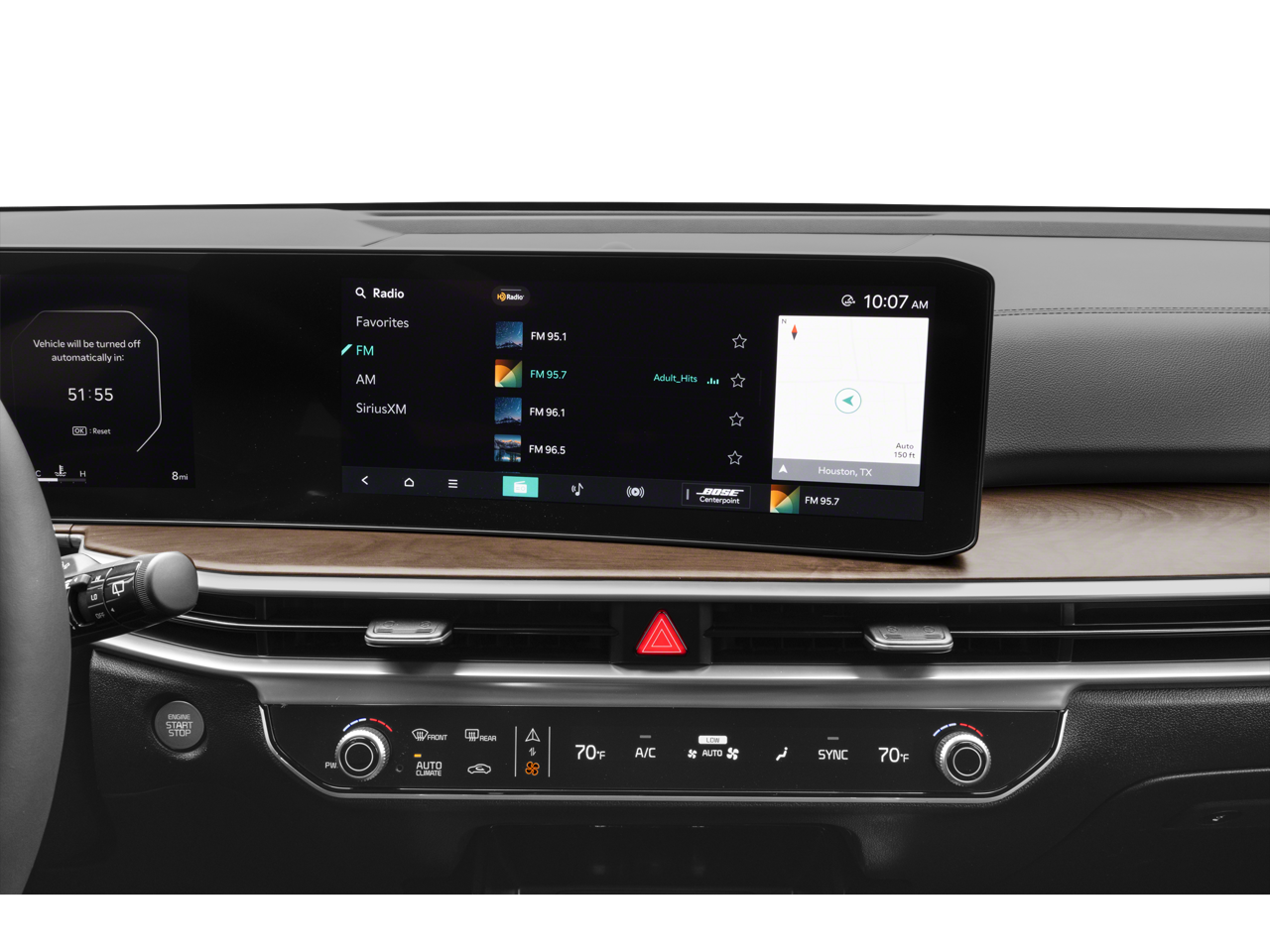 - Radio: AM/FM Bose Premium Audio System -inc: 12.3" ccNC touchscreen navigation HD Radio Bluetooth® w/audio remote control wireless Android Auto and wireless Apple CarPlay voice recognition Sirius XM modem Kia Connect Wi-Fi hot spot Over-The-Air Updates (OTA) 12 speakers including subwoofer center channel external amp and USB