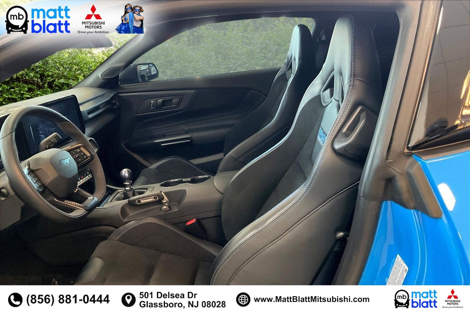 This **used 2024 Ford Mustang Dark Horse RWD** is the ultimate expression of modern American performance. Finished in eye-catching **Grabber Blue Metallic** and equipped with a precision **Tremec 6-speed manual transmission**, this Dark Horse delivers raw, naturally aspirated V8 power paired with track-ready engineering. Available now at Matt Blatt Mitsubishi in **Glassboro, NJ**, this low-mileage Mustang is a rare opportunity for performance enthusiasts across **South Jersey**, including Deptford, Washington Township, Turnersville, and Sewell searching for a serious **used performance car for sale in Glassboro, NJ**.